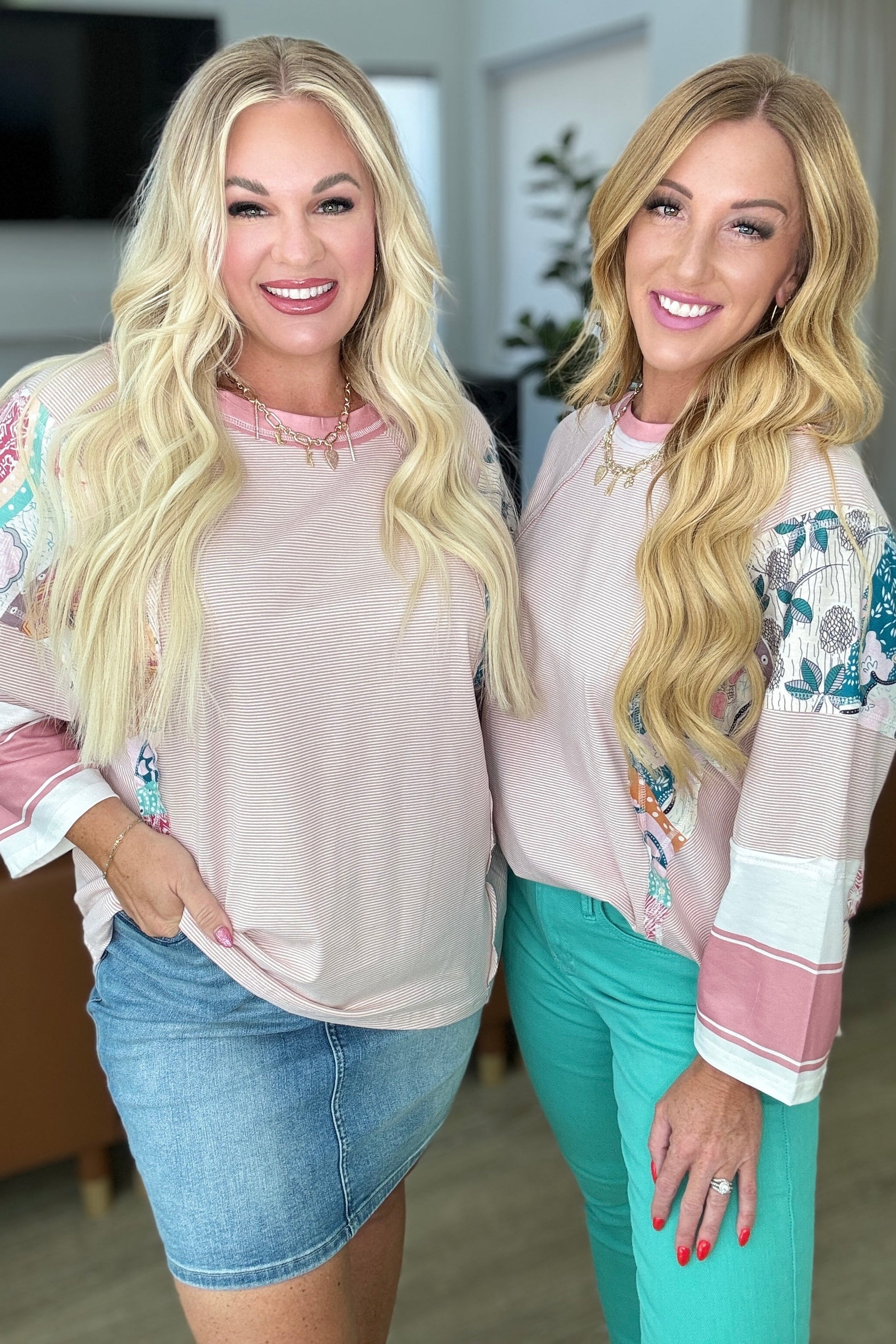 Make a statement with our New Chapter Floral Color Block Patchwork Top. With a boat neck and exposed seams, this top high stretch beauty provides ultimate comfort and a dolman sleeve for a touch of style. And don't worry about the fit, it's oversized for a casual yet flattering look.