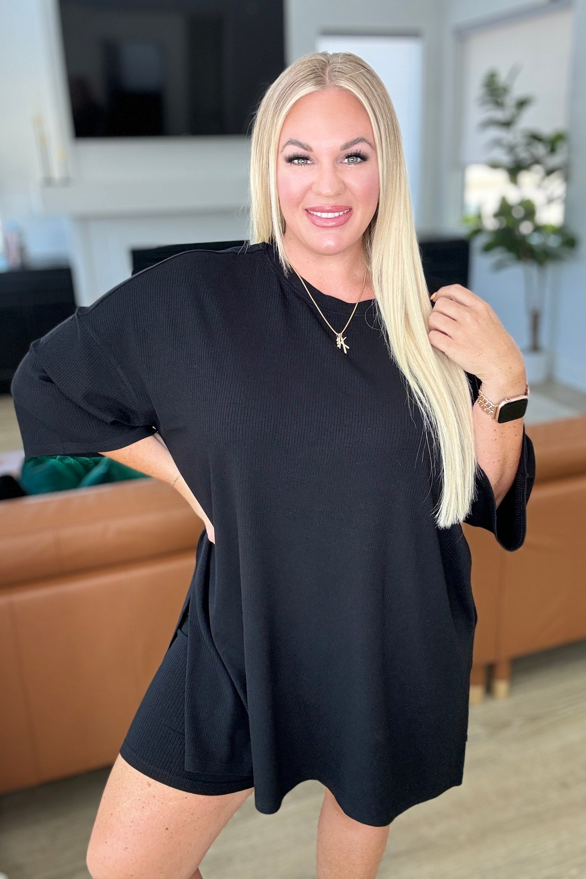 The BEST oversized tee + biker set that you've ever put on your body is here! Custom designed for One Eleven North, this high end ribbed fabric drapes beautifully on your body. The drop shoulder and side slits add interest to the top while the wider elastic waistband fits oh-so-comfortably. Available in three great colors - you're going to want to grab every single one!