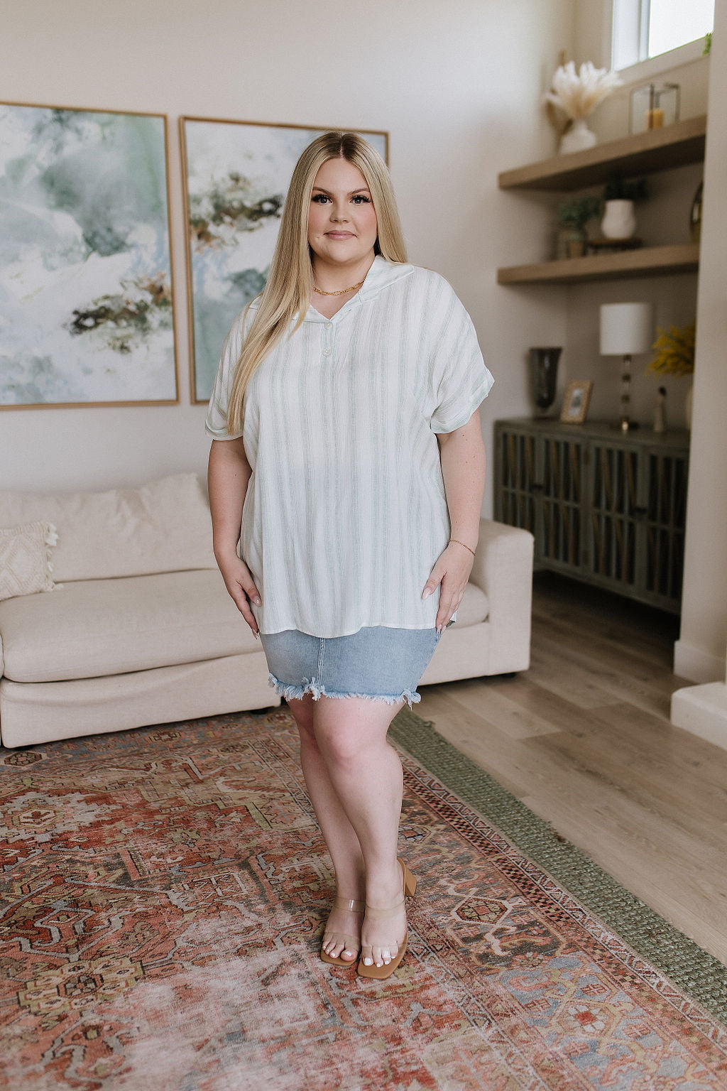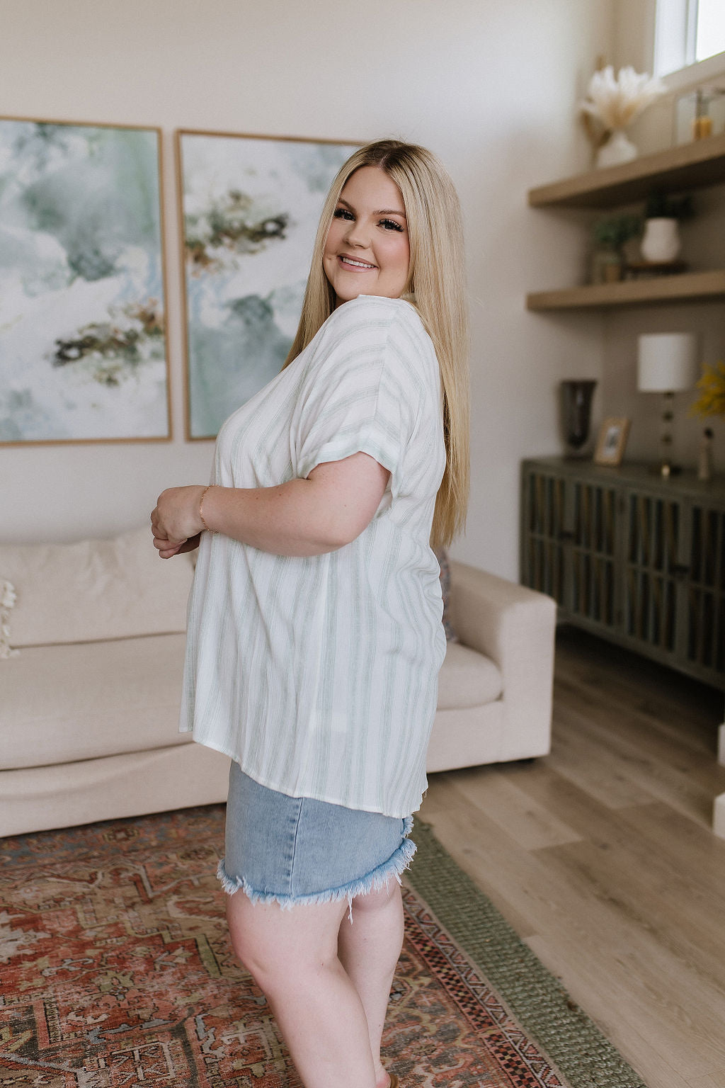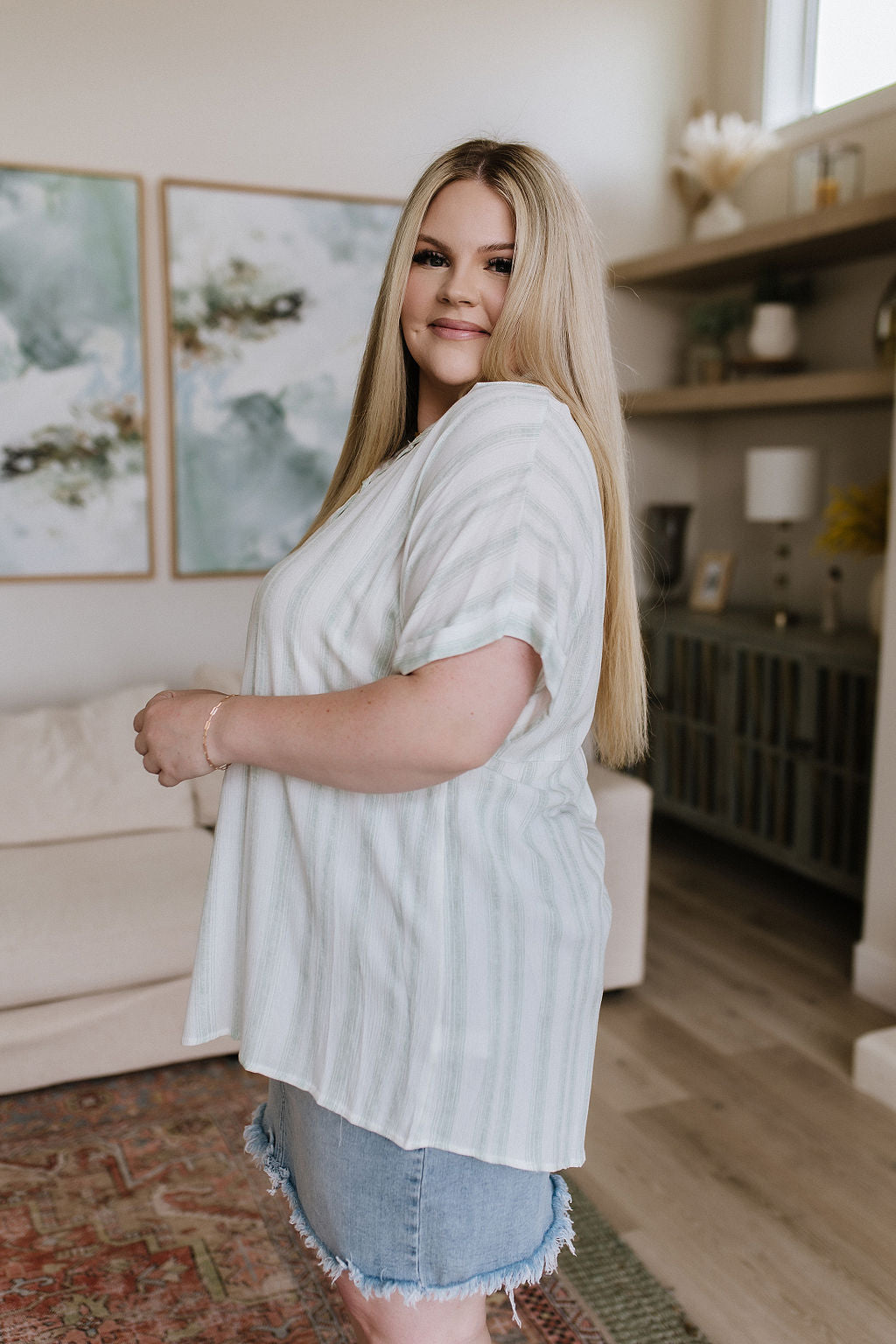 Be effortlessly stylish with the So Far Away Striped Top! Featuring a classic faux button neckline, fold over collar, cuffed dolman sleeves, and a gathered back seam for a comfortable fit. The casual stripes complete the look for an effortless, yet sophisticated style!